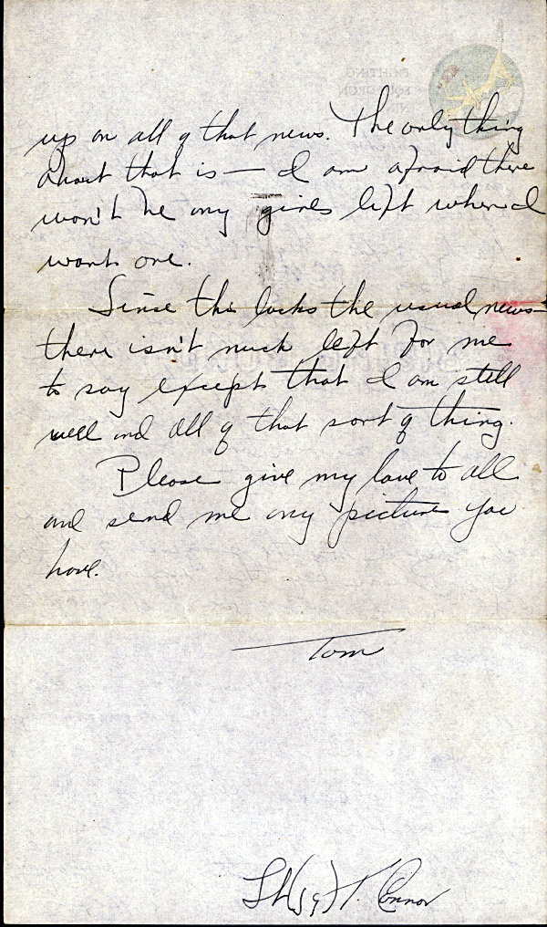 TOM CONNOR'S FINAL TWO LETTERS HOME CLICK HERE to return to the Tom Connor "Ultimate Price" Web-page CLICK HERE to return to the "Harry" Connor Family Website CLICK HERE to return to the Connor Index page
