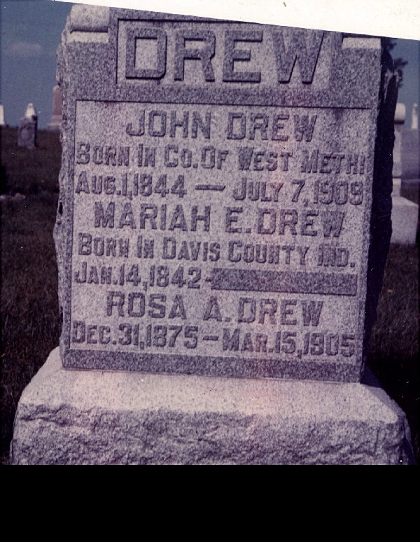 JOHN DREW, JR. (1844 - 1909)Three years old when the family emigrated. Click to jump to his information.