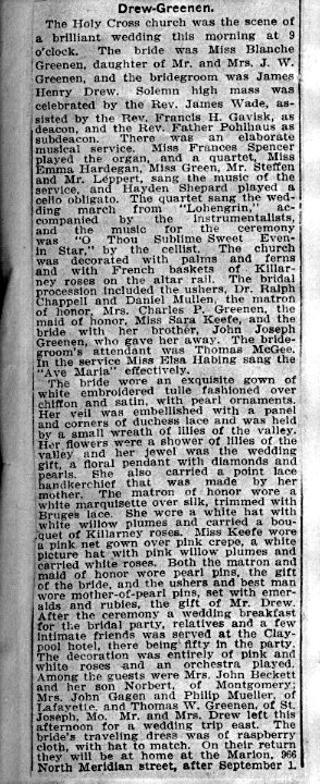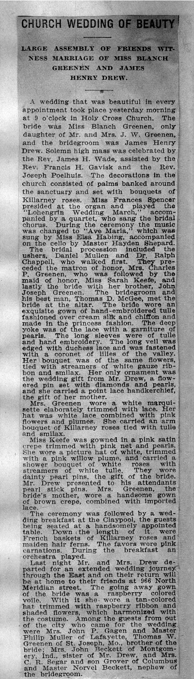 THE WEDDING OF JAMES "HARRY" DREW AND BLANCHE GREENEN