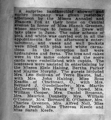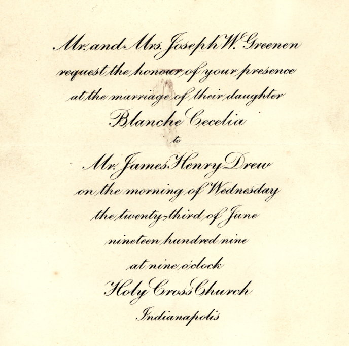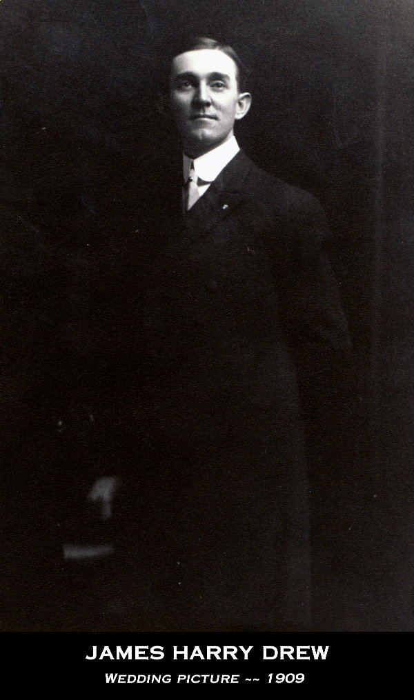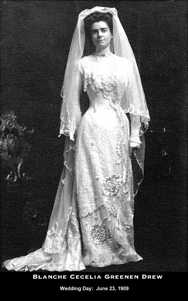JAMES "HARRY" DREW AND BLANCHE GREENEN DREW WEDDING ~~ JUNE 23, 1909