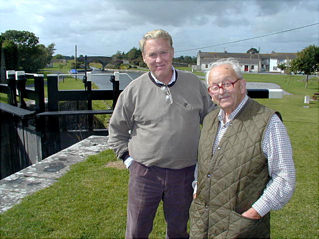 Dan Drew and Watson Mills at the lock in Ballynacarrigy, Septempber 2001. Ballynacarrigy was once a significant harbor where many barges could be docked, loaded and unloaded. In addition to the lock there are several bridges in the Ballynacarrigy area.![]()