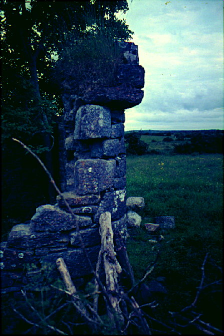 THE RUINS AT LAKENSTOWN This configuration of stone work, part of the Lakenstown ruins, plays an integral part of the tradition that the Drew families of that time were excellent stonemasons. Paddy Drew, living on the property in 1971, asserted with certainty that all the stonework in those ruins was the work of Drews... including this "round corner" which Paddy said was famous throughout several counties.