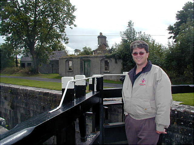John M. Drew at the Gate of the Ballynacarrigy Lock, Septermber, 2001. The small building in the background was once a ware house used for freight along the canal. This photo shows the stonework that is prevalent along the entire route of the canal.CLICK HERE to see the Royal Canal on the detail map