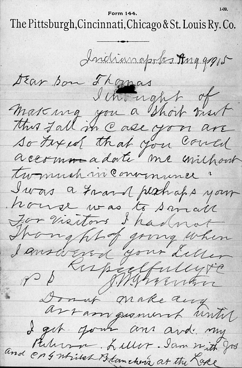 And, most importantly for this section of the Greenen history, his decendents have kept many letters he wrote on railroad stationery with the letterhead of the Pittsburgh Cincinnati Chicago & St. Louis Railroad Company.