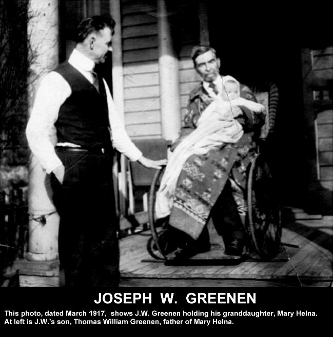 At the time of his death, May 16, 1918, J.W. was in the care of his son "Joe" (John Joseph Greenen) in Indianapolis.