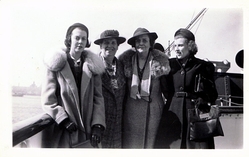 This photo is from about 1935.  It shows shows Blanche Greenen Drew (second from right) with her daughter, (Blanche) "Cecelia" Drew (at far left,) Her brother, Charles's wife, Amelia ("Millie") Dewenter Greenen (between them.)  The lady at the far right remains unidentified.