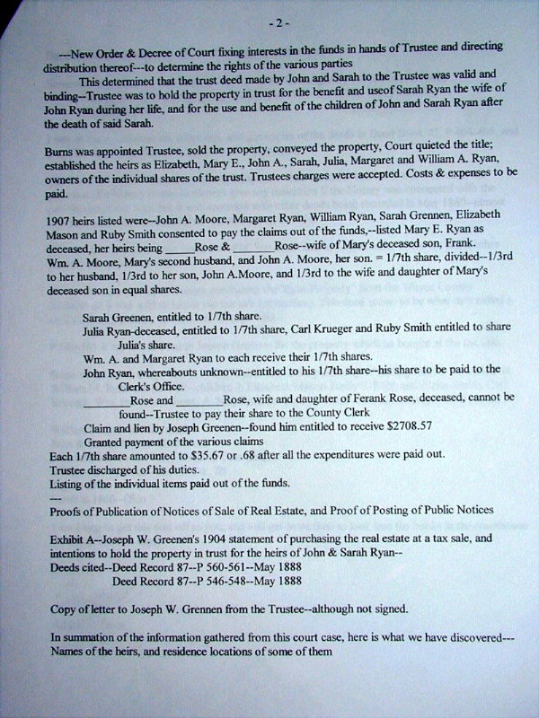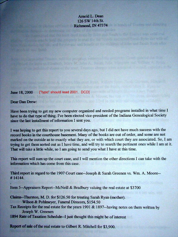 The following letter is a summary of these proceedings based on documents discovered and analyzed by professional researcher, Arnold Dean, president (2001) of the Wayne County Genealogical Society.